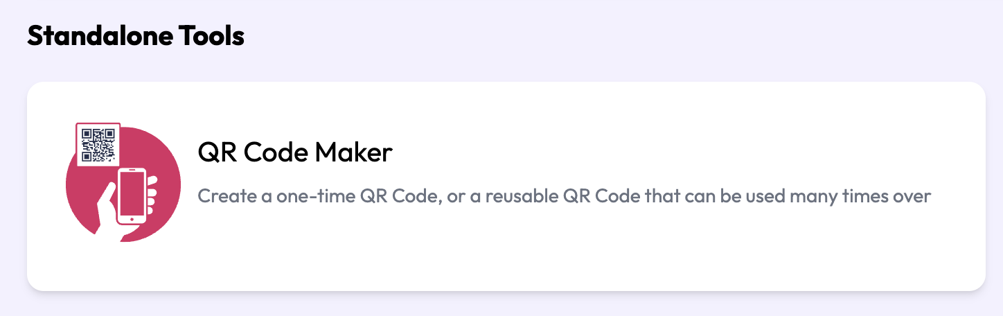 In the Dashboard, clicl QR Code Maker under Standalone Tools