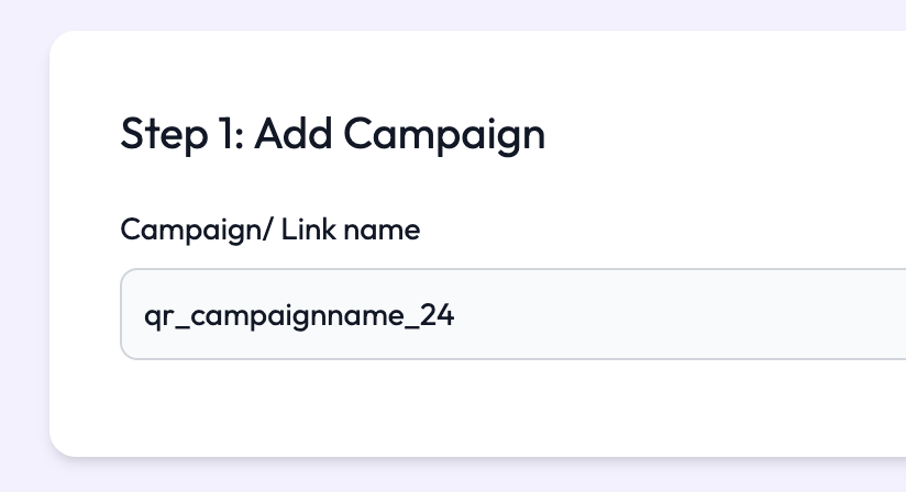 Type in the name of QR Code Campaign (we recommend a convention such as "campaign_ddmmyy")