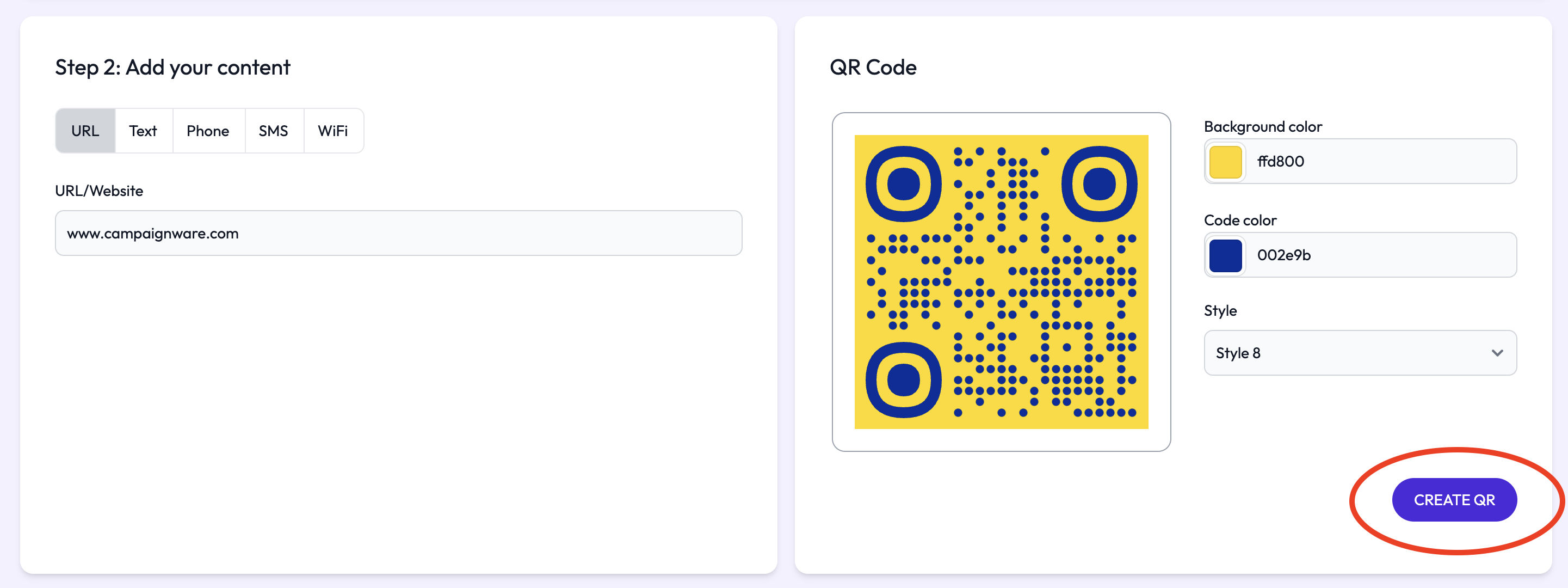 Campaign Link's QR Code Maker lets you create multiple types of QR Codes: