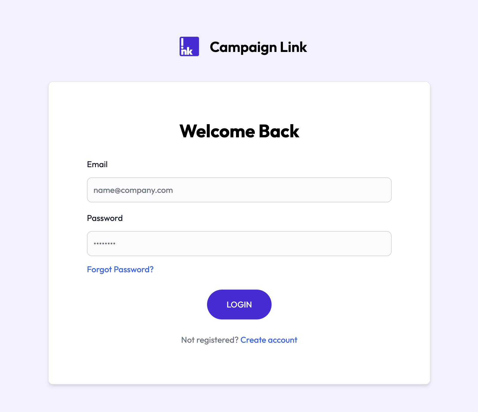 Simply enter the unique back in Campaign Link and you'll be able to log in.