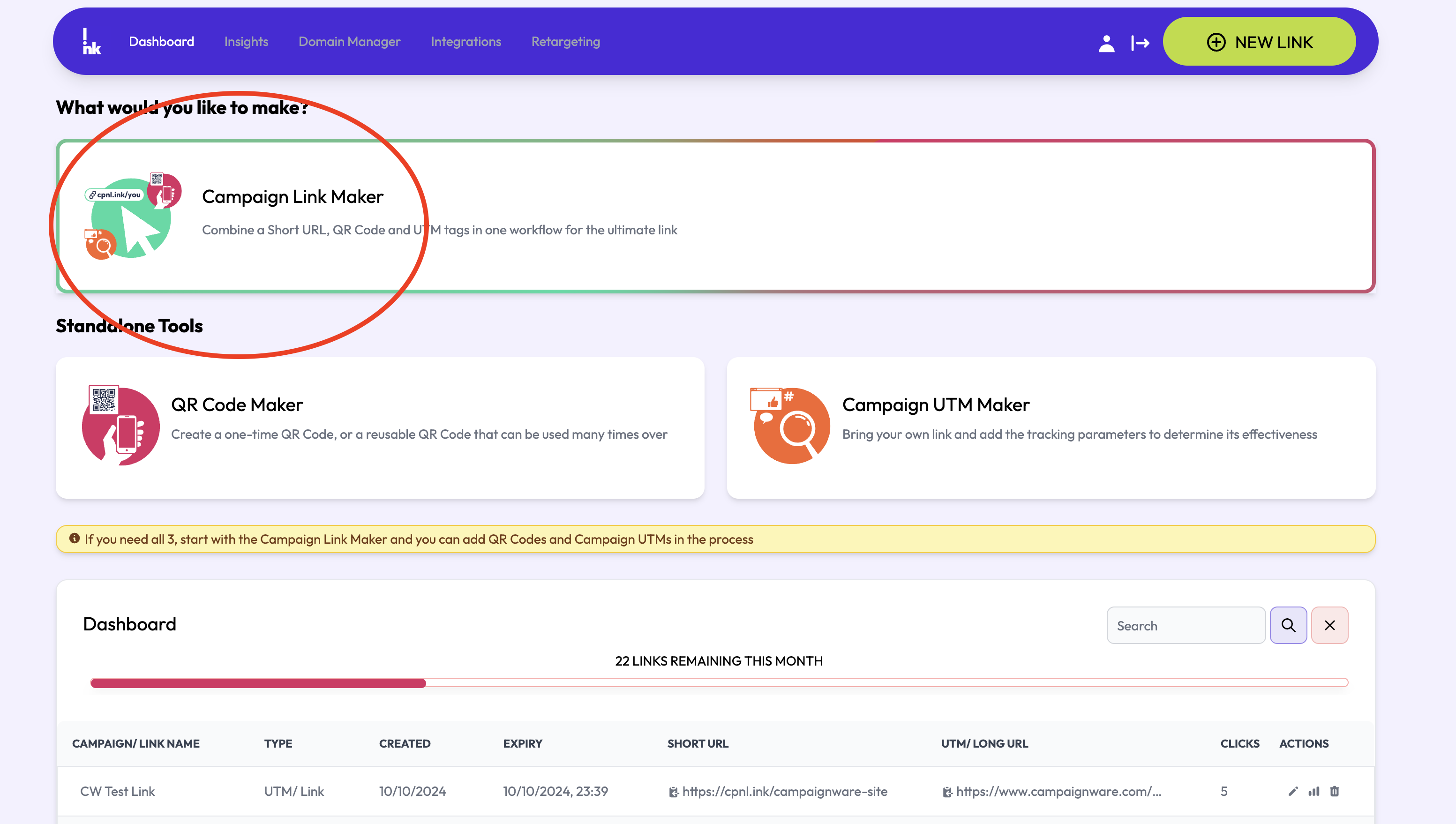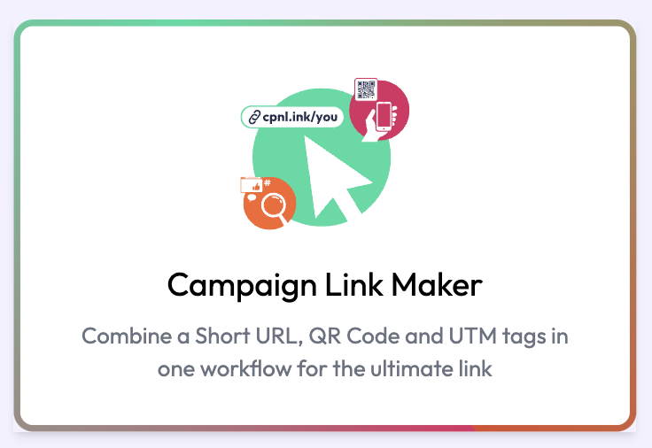 Using the Campaign Link Maker option allows you to create a Short Link, QR code and UTM Campaign all in one workflow.